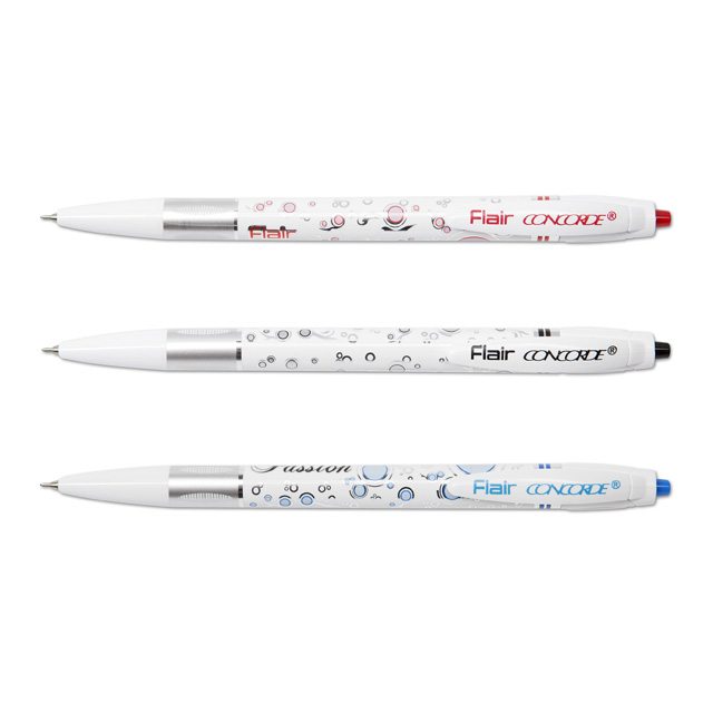 Guličkové pero Concorde Flair. Hrot 0,5 mm, modrá náplň. Plastové telo. Špeciálna japonská náplň. Balenie: 12 ks/ farebný mix