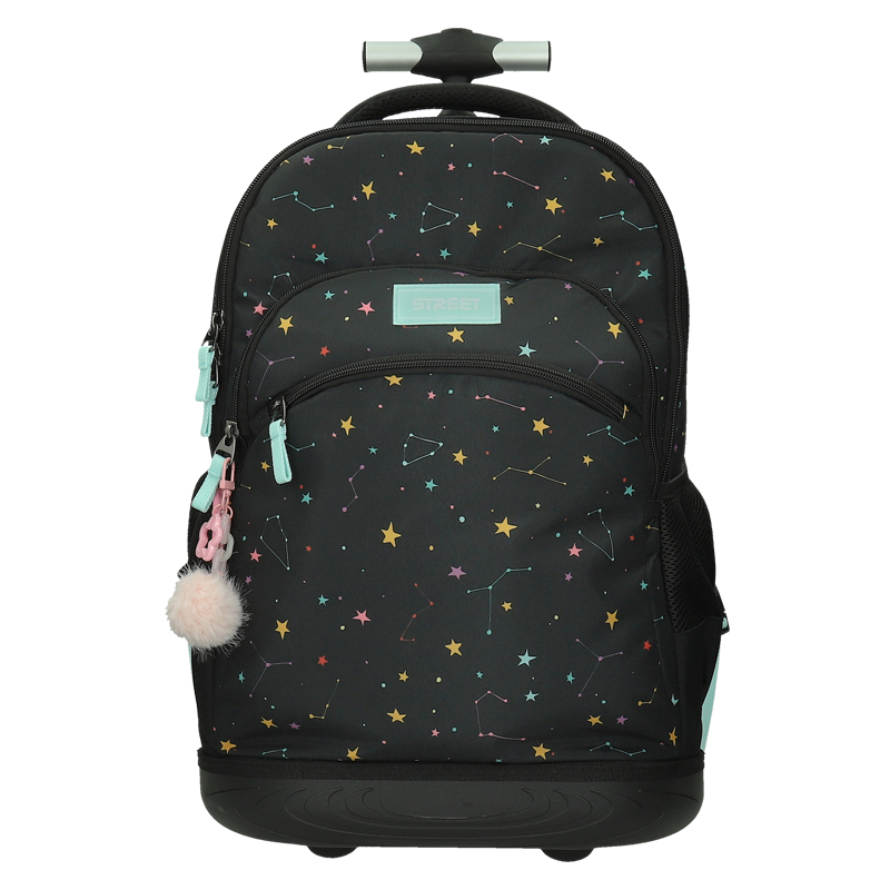 Ergonomická, pohodlná vysúvacia rúčka, vďaka ktorej možno batoh tlačiť pred sebou, alebo ho ťahať za sebou. Batoh je na spodku vybavený tichými kolieskami.