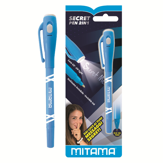 Magické pero - 2 funkcie v jednom: guličkové pero s modrým atramentom + pero s magickým atramentom. Produkt obsahuje aj UV lampu k čítaniu neviditeľného textu písaného magickým atramentom.. Počet ks v balení: 15