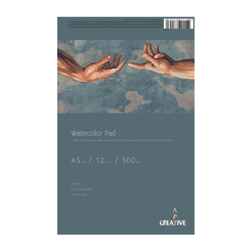 Umelecký skicár na akvarelové kresby. Má vysoko kvalitný, obojstranný papierový povrch pre akvarelové techniky . Papier je v bloku a má 12 listov formátu A3 s gramážou 300g/m2.