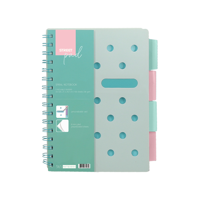 - Špirálový zošit A5 100l linkovaný STREET Pastel green