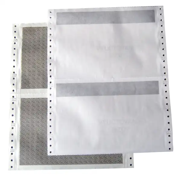 Mzdové diskrétne obálky sú určené pre tlač výplatných pások na ihličkovej tlačiari. Vyrobené sú ako tabelačný papier 25x06´´ (1+2). Po vytlačení mzdových údajov sa vrchný originál oddelí a zostáva v účtarni. Na prvú kópiou sa cez priepisový pás pretlačí iba časť údajov (napr. meno zamestnanca, výplatné obdobie). Diskrétne údaje zostávajú uzatvorené a utajené až na druhej kópii. UP - priepisový pás je široký 15 mm. Priepisový pás začína 8 mm od hornej perforácie.
